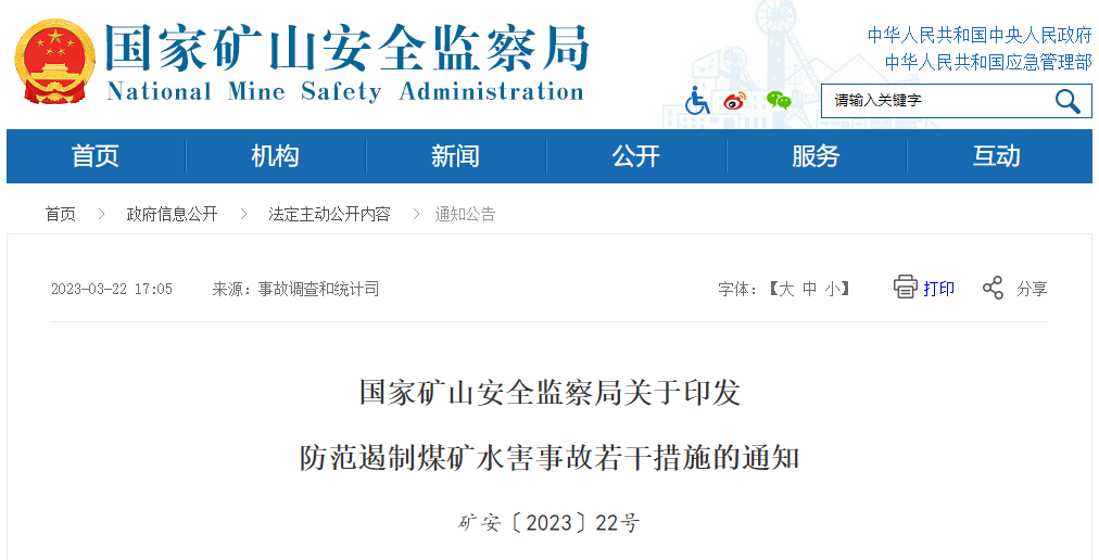 3月21日,国家矿山安全监察局发出通知,为深刻吸取近年来煤矿水害事故教训,切实加强煤矿防治水工作,制定并印发《防范遏制煤矿水害事故若干措施》。